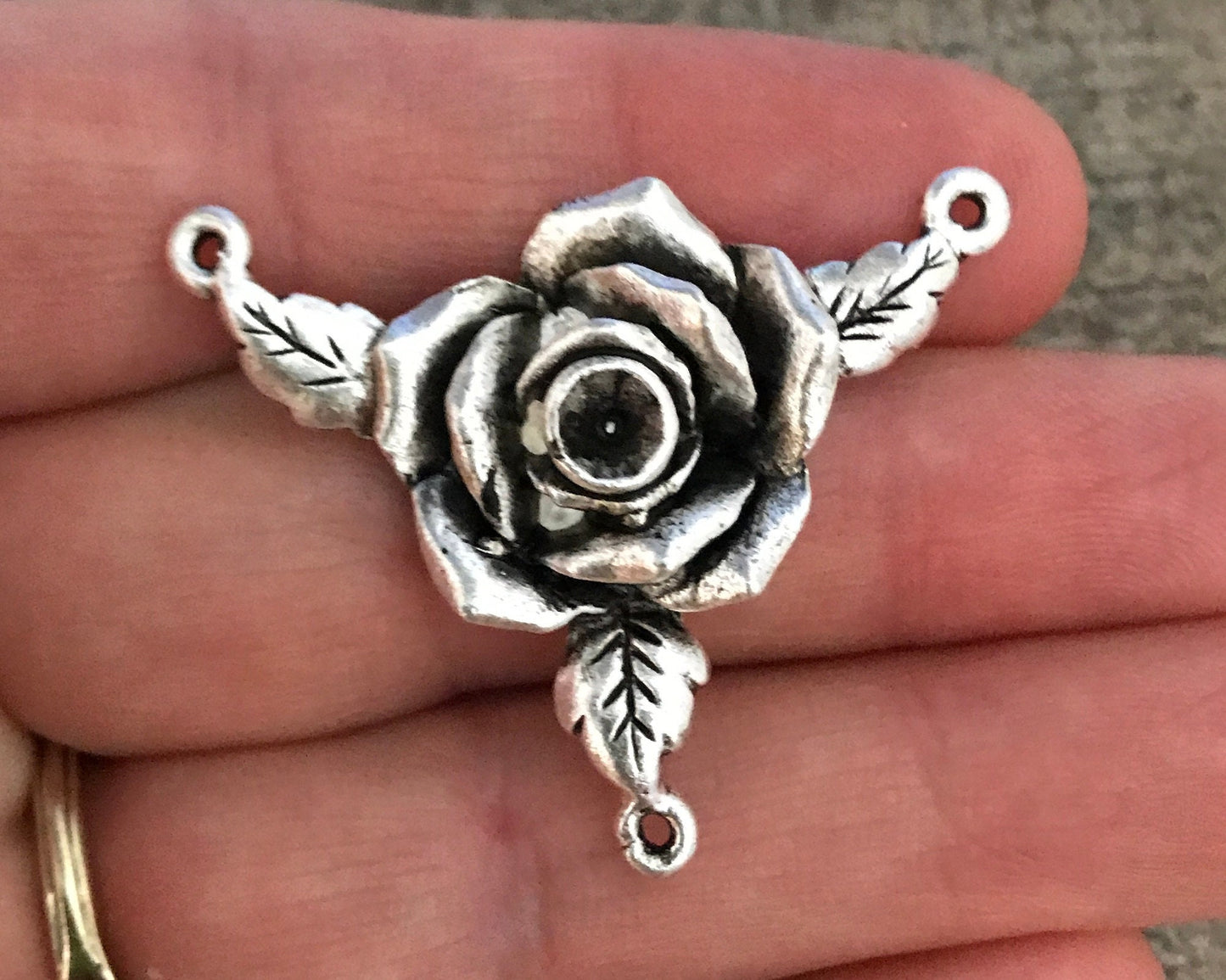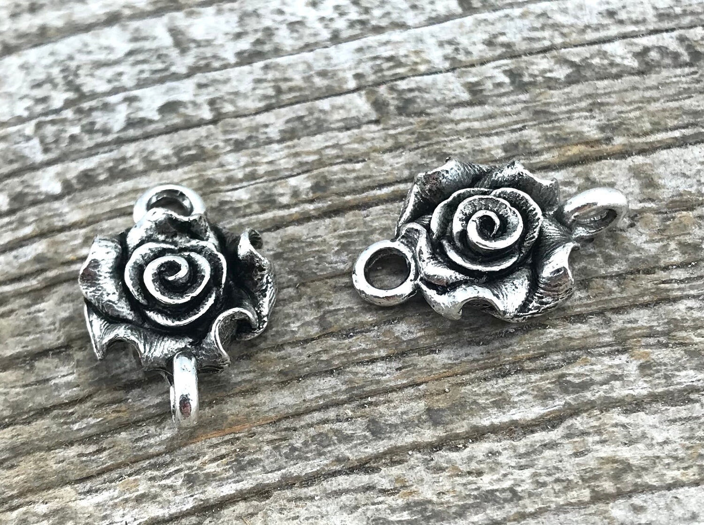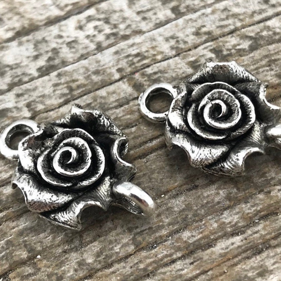 2 Rose Connector, Silver Connector, Metal Rose Flower, Victorian Rose, Jewelry Supplies, Carsons Cove, SL-6007