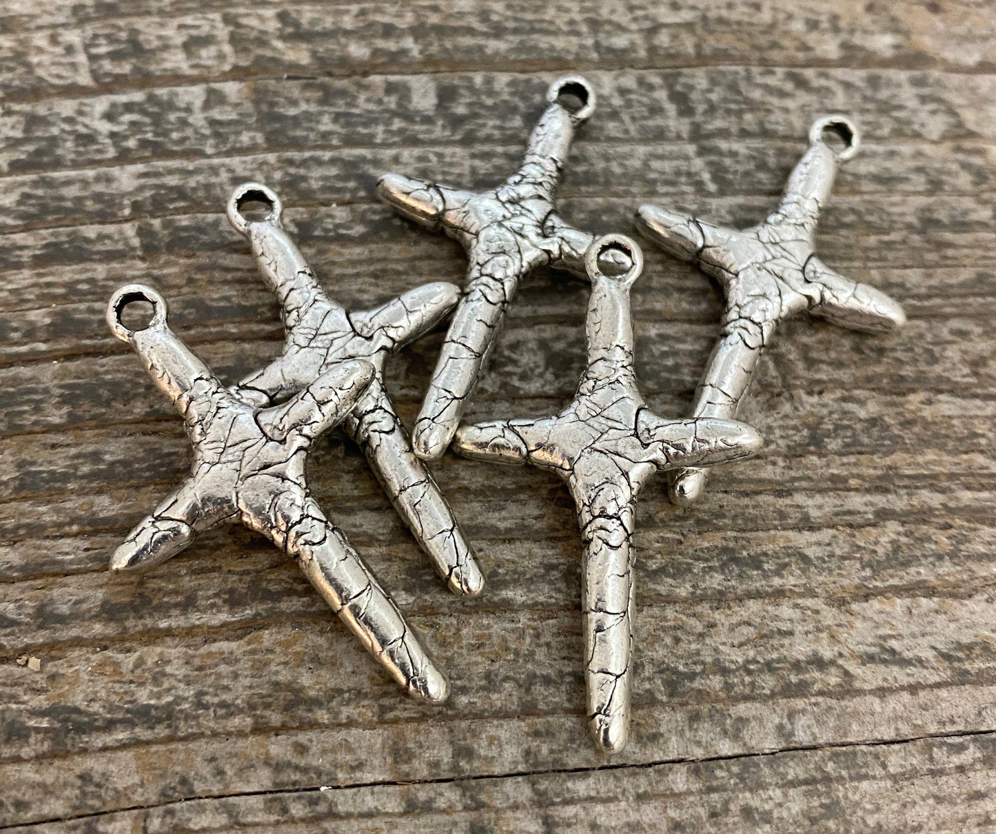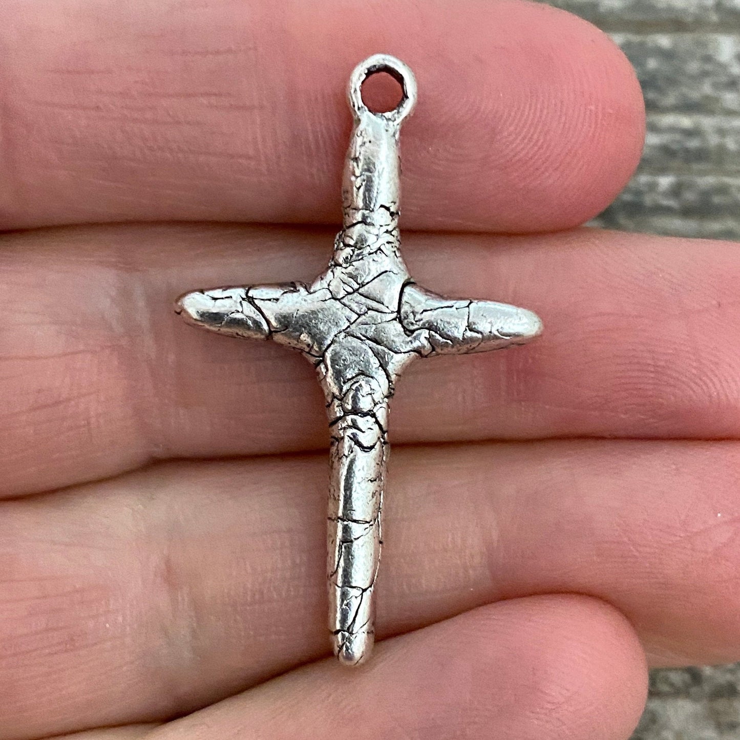 Skinny Crackled Stick Cross Pendant, Distressed Charm, Antiqued Silver Cross for Jewelry Making Supplies, SL-6083