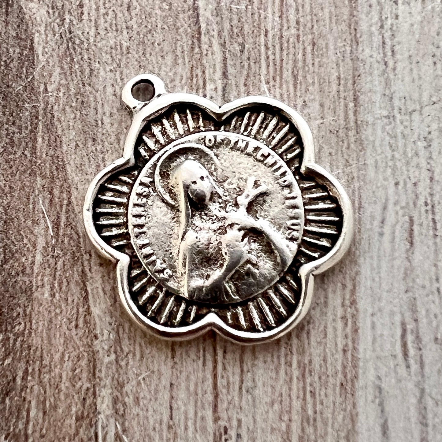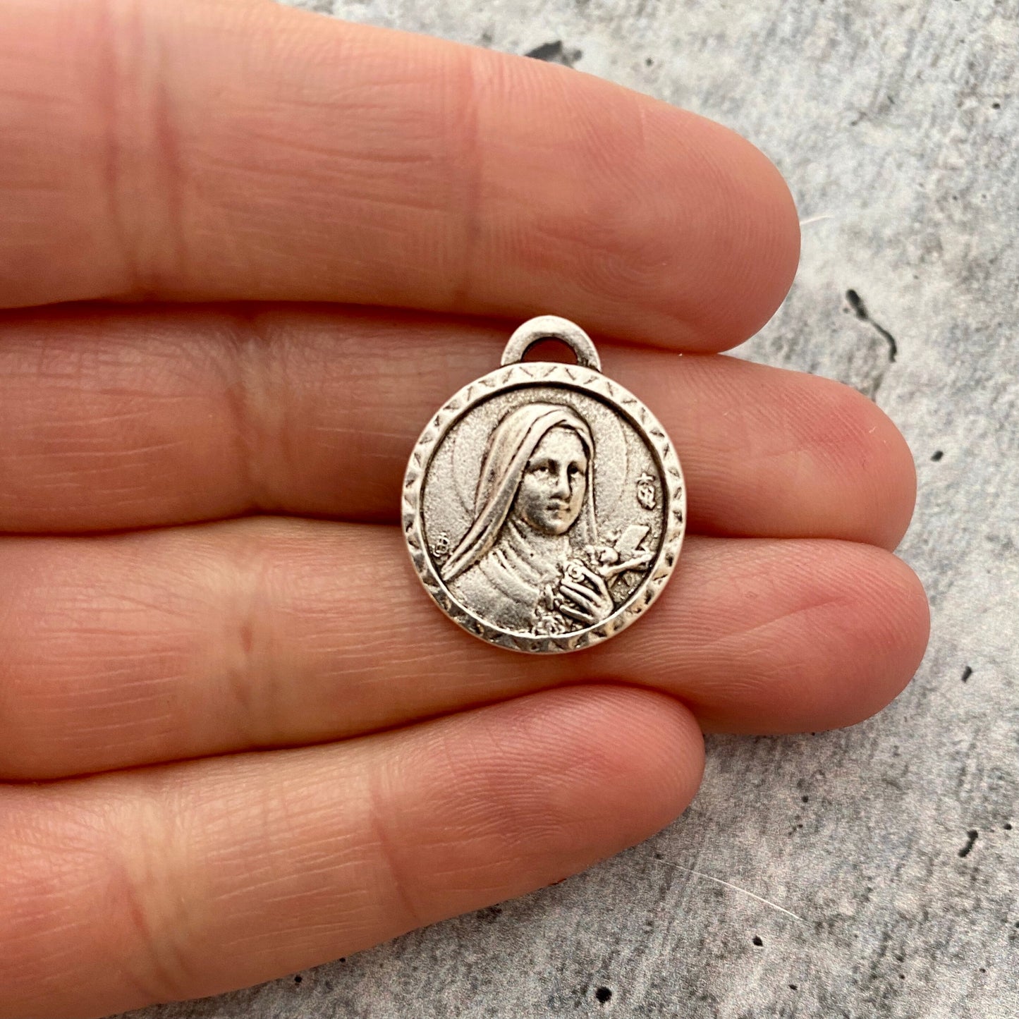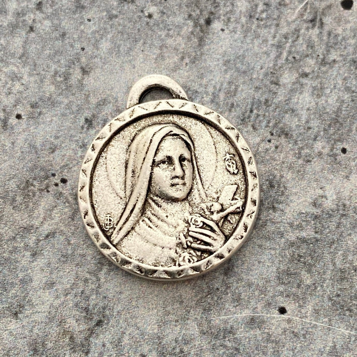 Catholic Medal, St. Theresa, Silver Medal Charm, St. Therese de Lisieux, Religious Charm, Catholic Pendant, Religious Jewelry Supply SL-6030