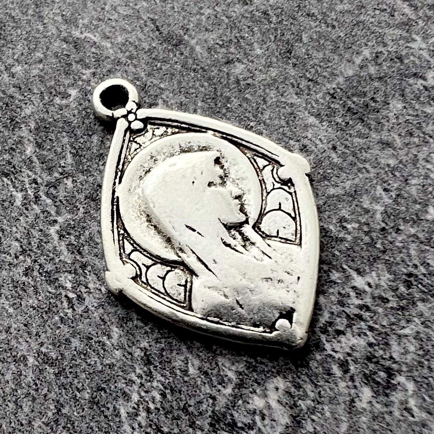 Add Mary Medal, Our Lady of Lourdes, Diamond Shaped Catholic Necklace, Religious Charm, Silver French Charm, Christian Jewelry SL-6238 to the cart