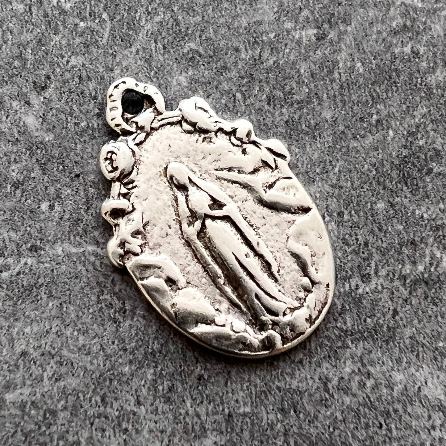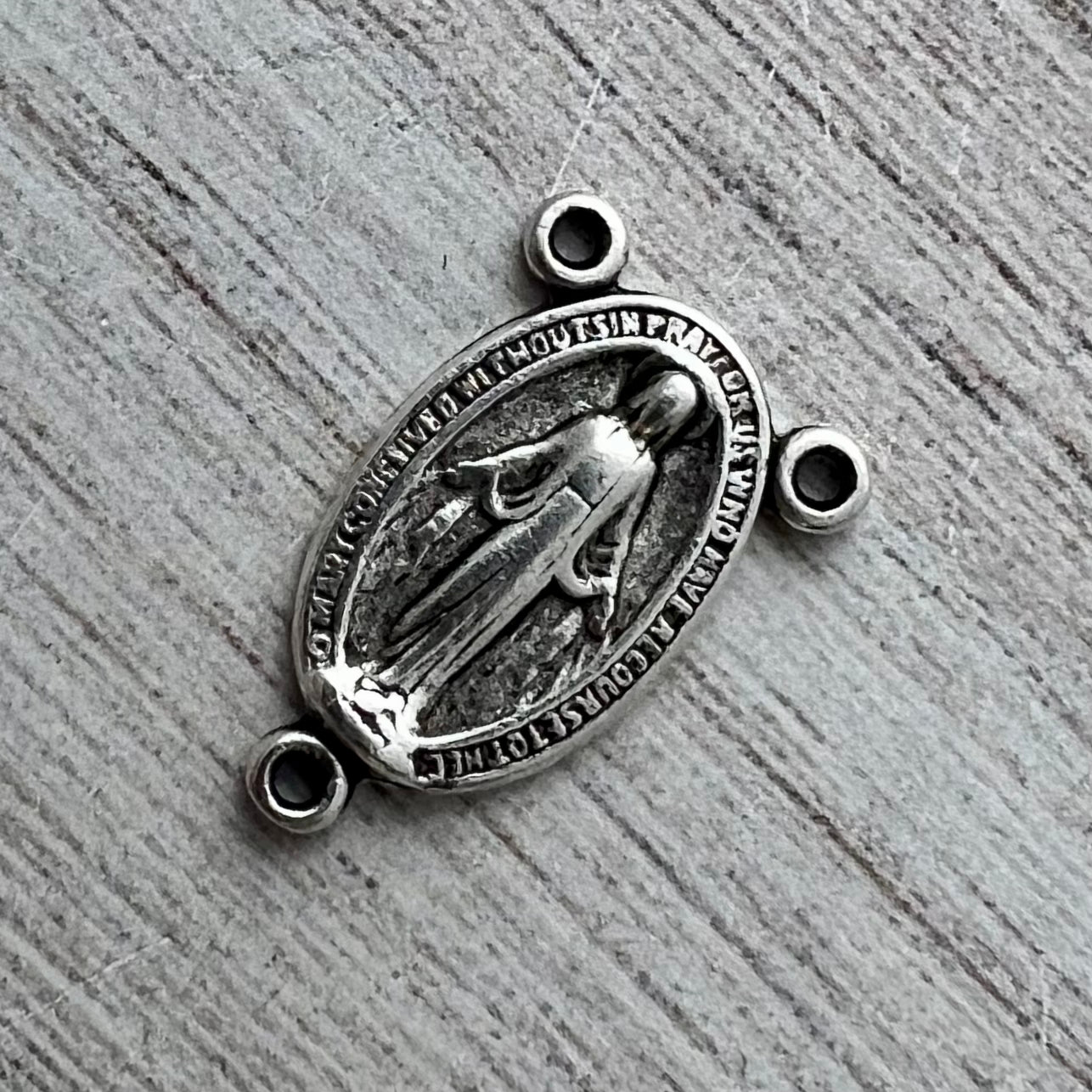 Oval Mary Centerpiece, Rosary Connector, Catholic Necklace, Vintage Rosary Parts, Antiqued Silver Charm, SL-6239