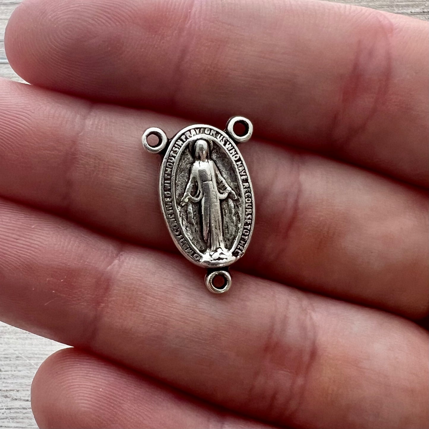 Add Oval Mary Centerpiece, Rosary Connector, Catholic Necklace, Vintage Rosary Parts, Antiqued Silver Charm, SL-6239 to the cart