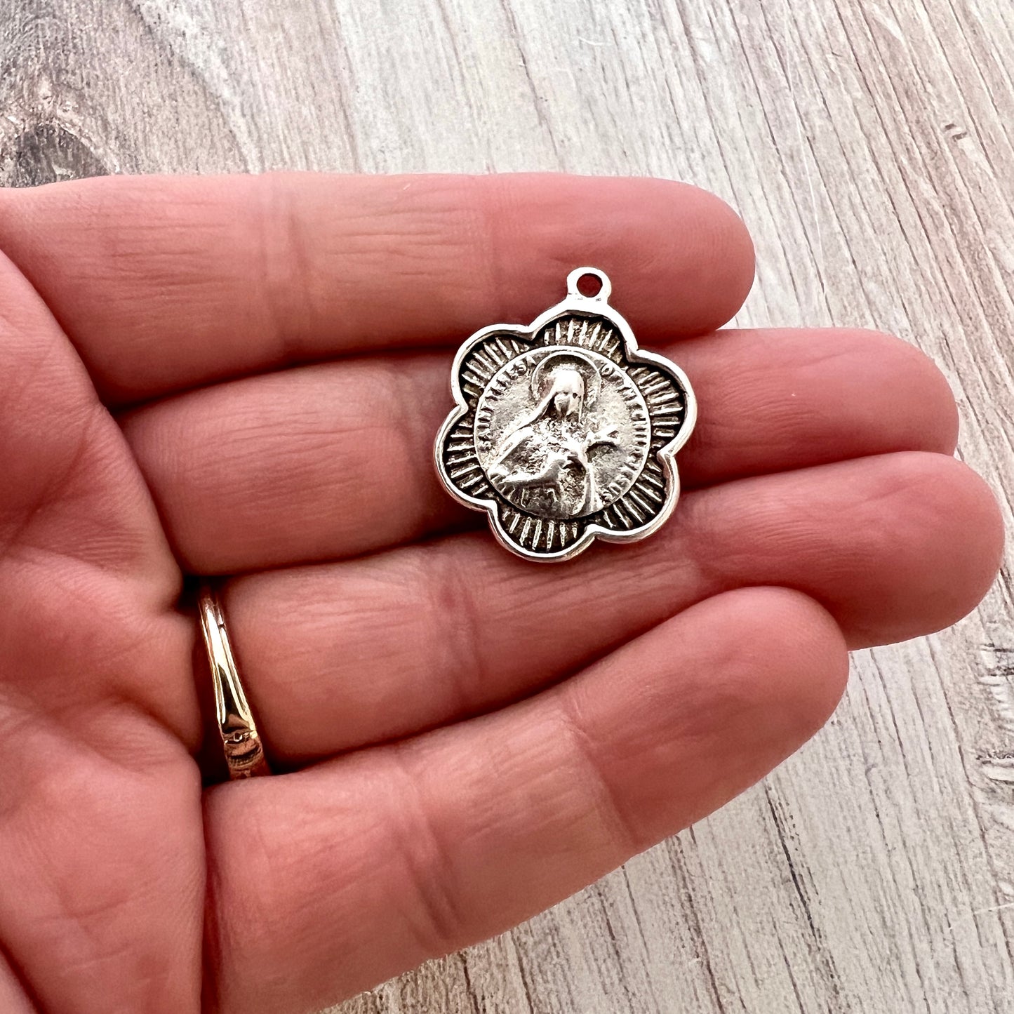 St. Teresa Catholic Vintage Medal, Religious Charm, St. Therese de Lisieux, Antiqued Silver, St. Theresa Jewelry, SL-6244