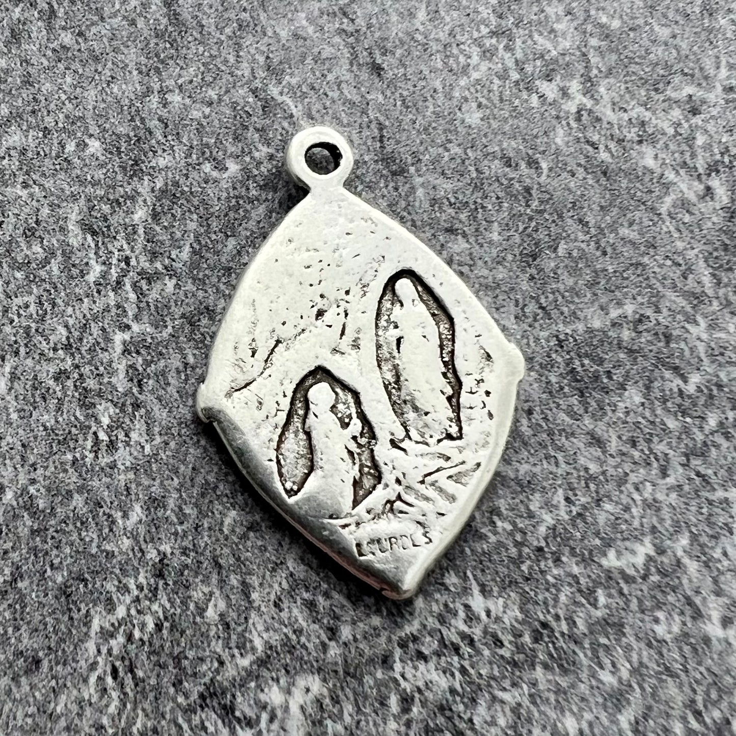 Mary Medal, Our Lady of Lourdes, Diamond Shaped Catholic Necklace, Religious Charm, Silver French Charm, Christian Jewelry SL-6238