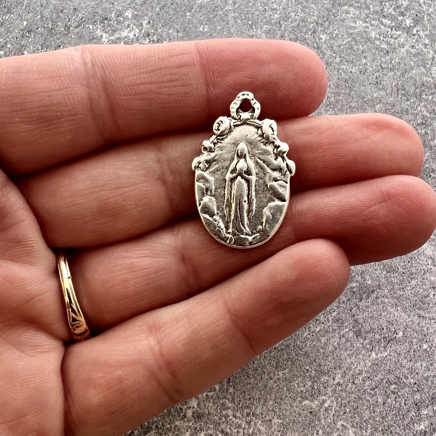 Mary Medal with Rays, Virgin Mary, Antiqued Silver Religious Jewelry Making Charm Pendant, Blessed Mother, Catholic Jewelry, SL-6255