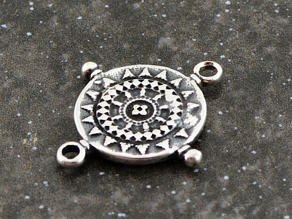 Here is a gorgeous connector with a compass design made of solid sterling silver. I love this piece because its detailed design gives it an old world feel. This piece is perfect for almost any kind of jewelry - necklace, bracelet, earrings. Use this component to make your designs stand out from all the rest.
