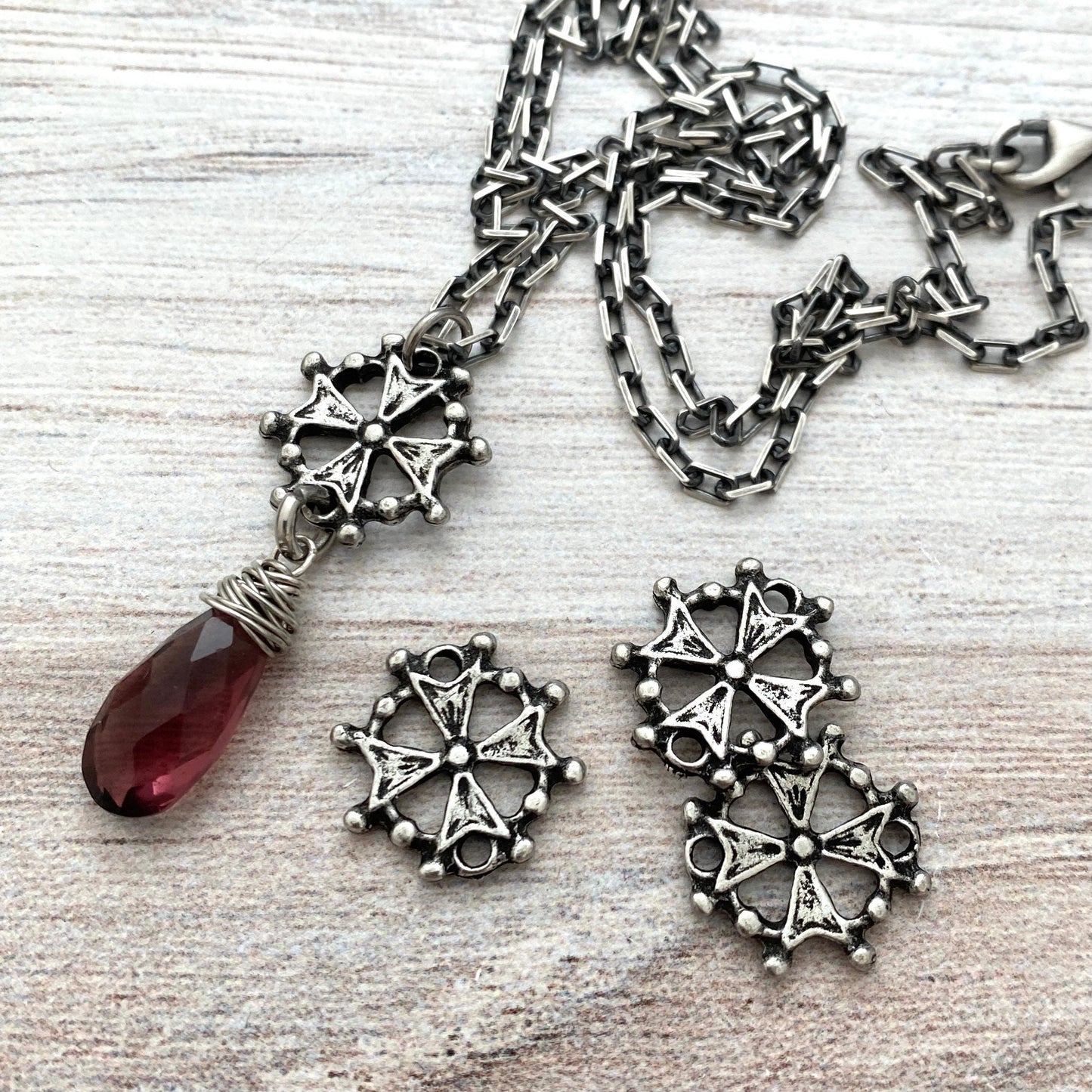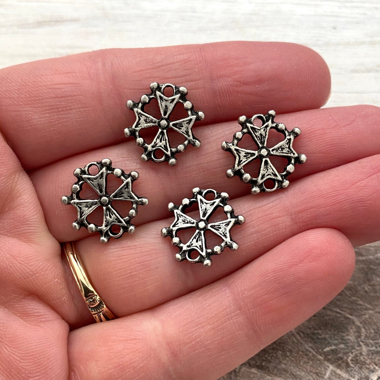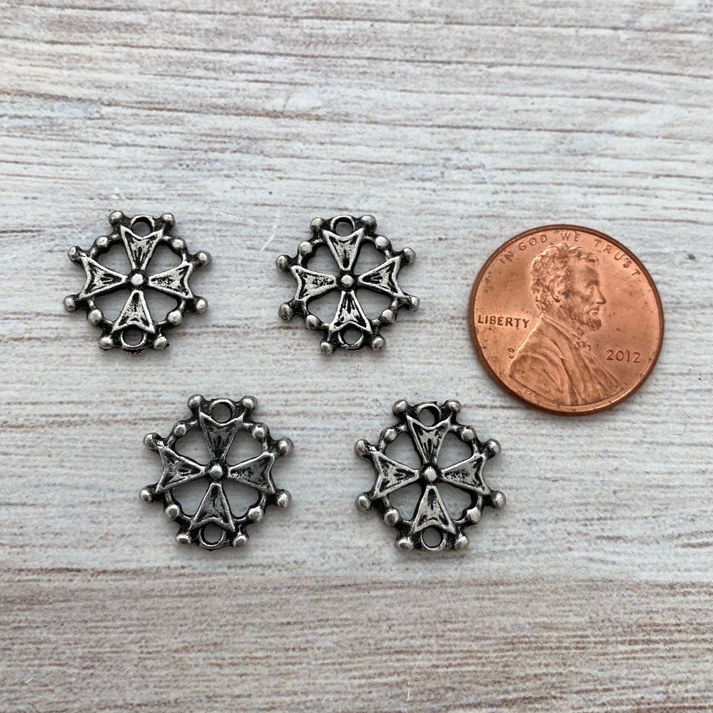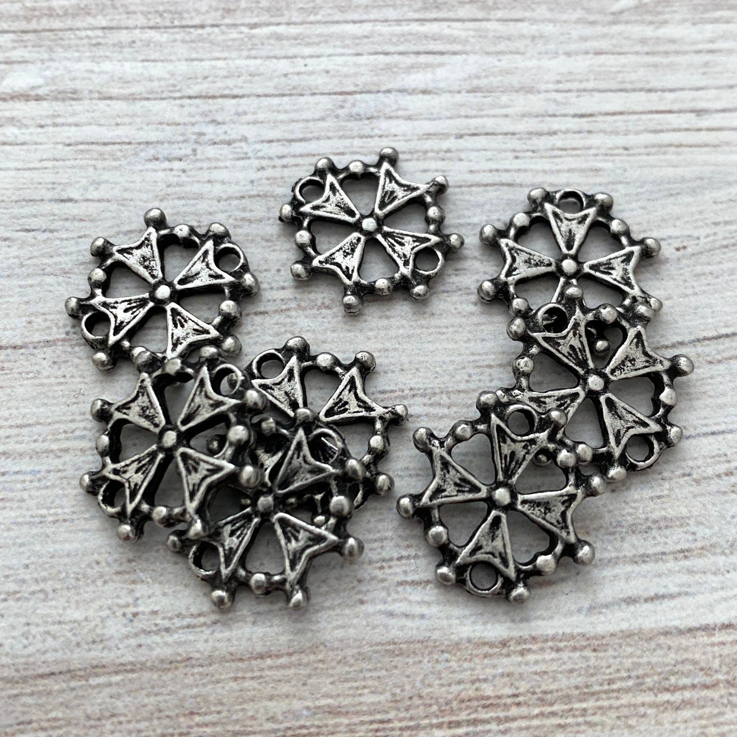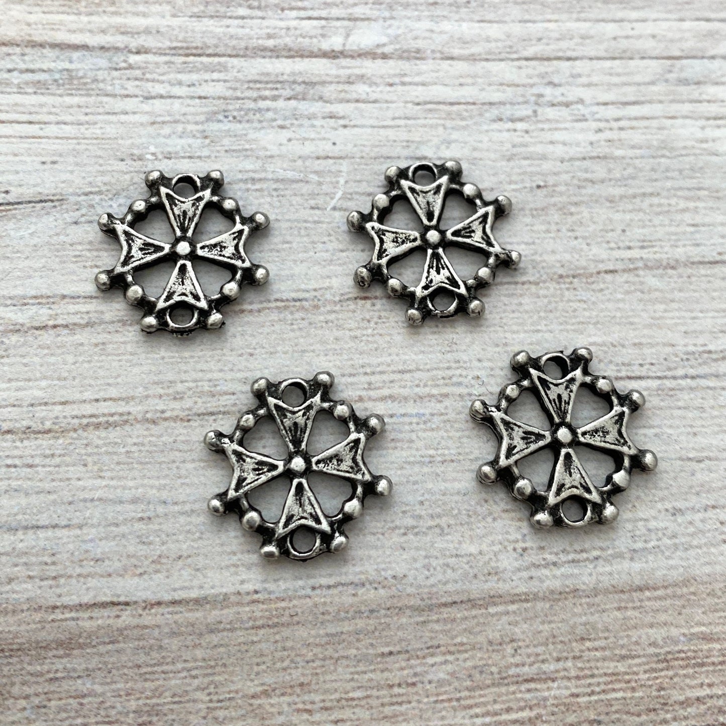 This small cross connector is known as a Huguenot cross, which originated in France. The eight points of the cross represent the 8 Beatitudes, which are eight blessings given by Jesus in the Sermon on the Mount in the Gospel of Matthew.