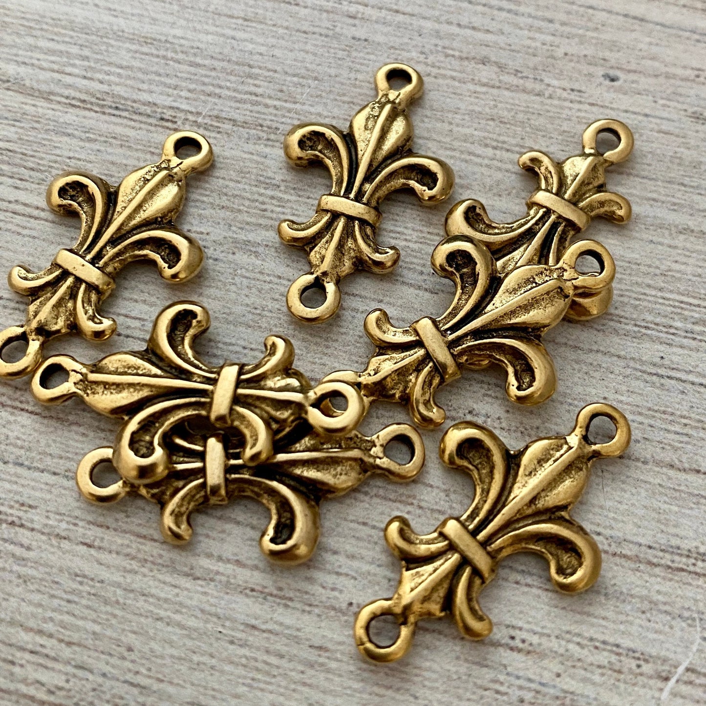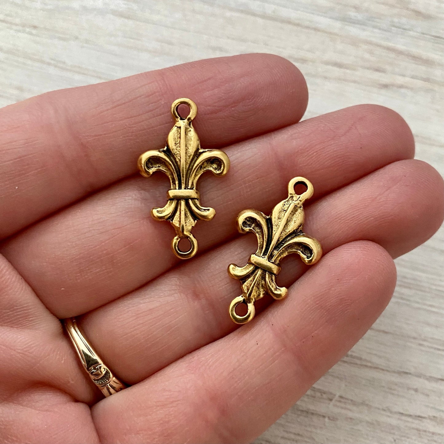 This little fleur de lis connector is perfect for an earring or necklace drop. Hang a gemstone from it to provide some color to your designs, or use it to connect chain. These are great to have on hand. You receive two.