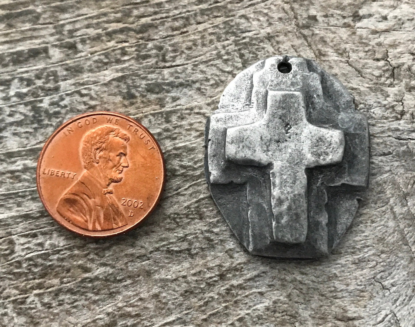 Here is a hammered cross created in a handmade, artisan style. It looks old...it was made with cracks and all; however, it's completely solid. This works beautifully for a necklace or bracelet.