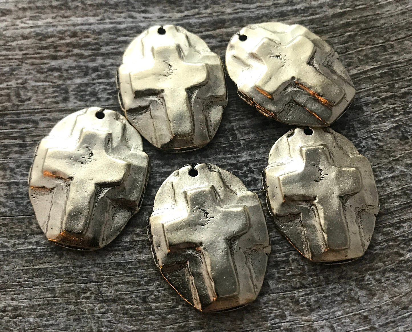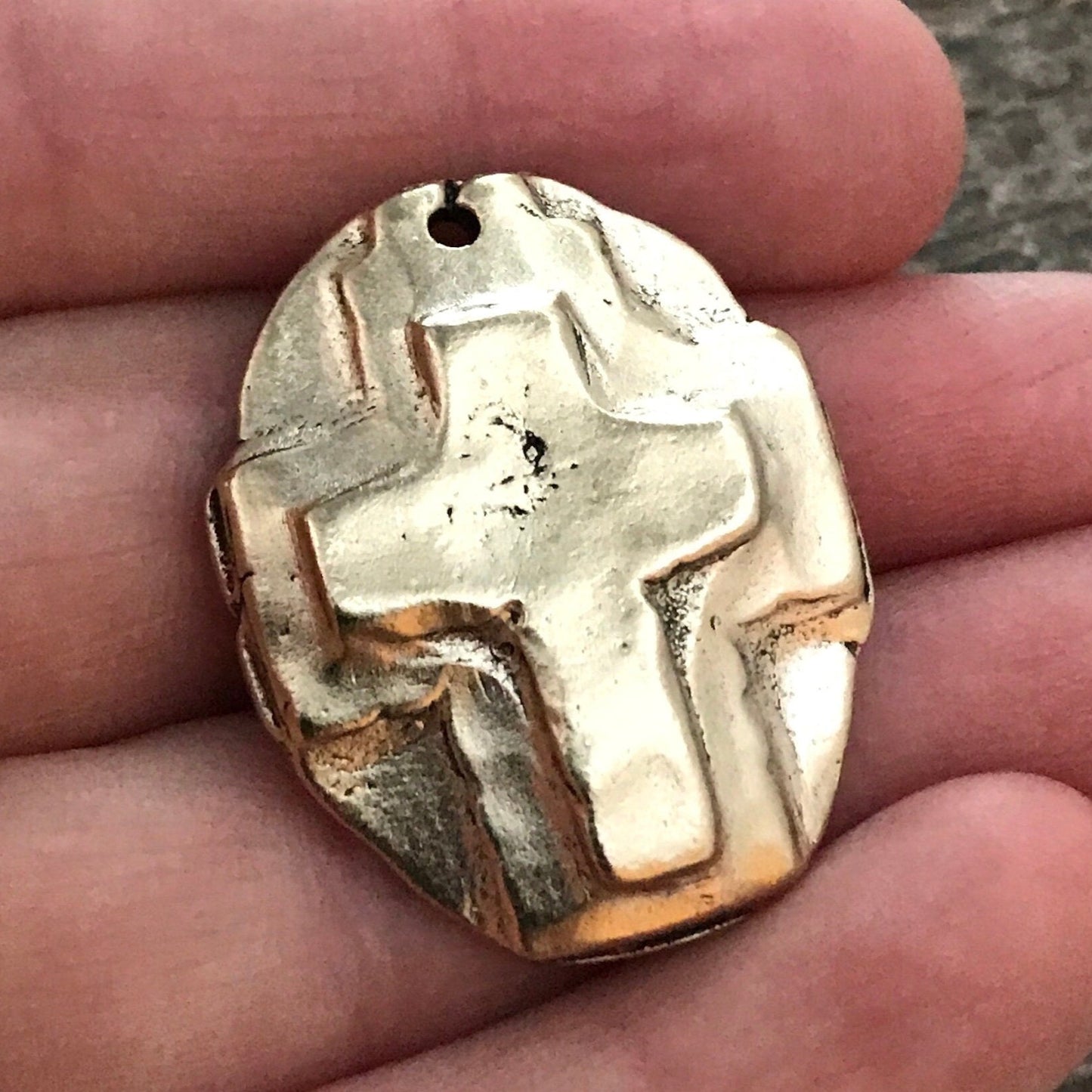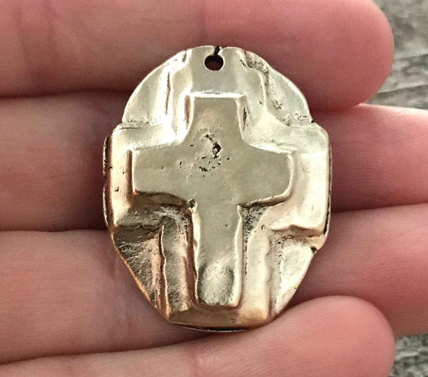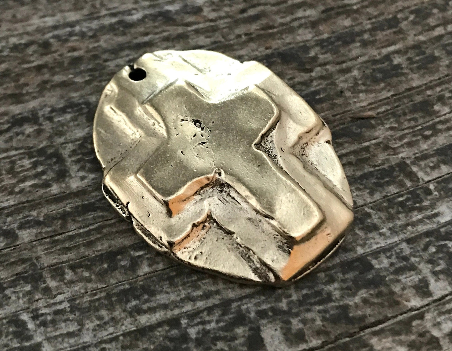 Here is a hammered cross created in a handmade, artisan style. It looks old...it was made with cracks and all; however, it's completely solid. This works beautifully for a necklace or bracelet.
