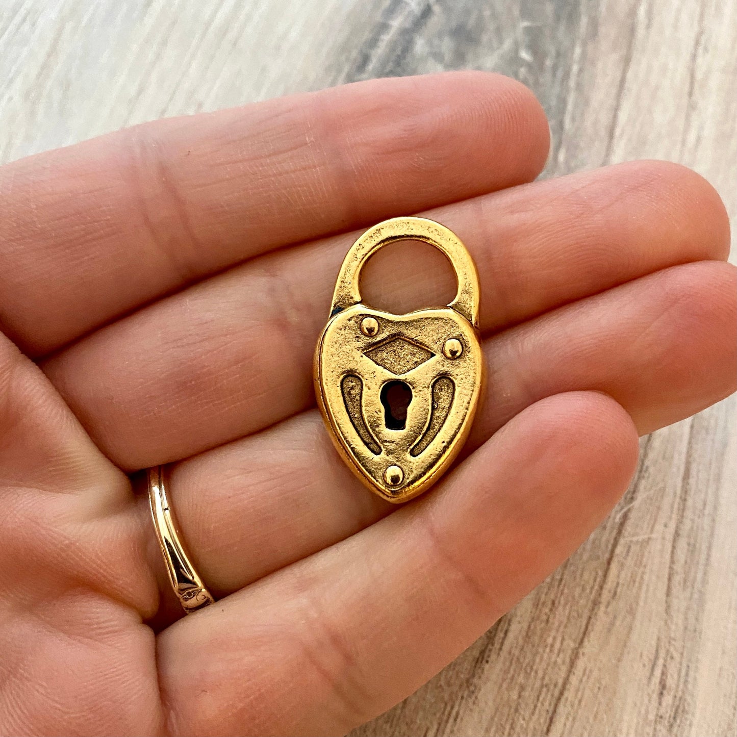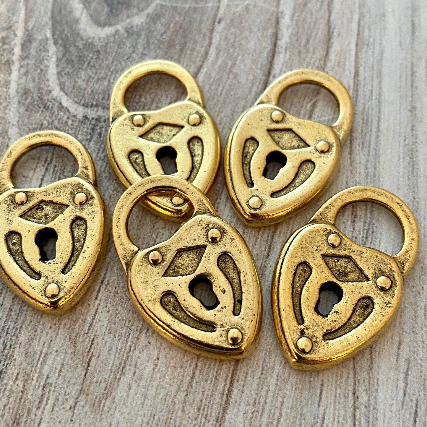 This is such a pretty little lock, with textures and shapes that provide visual interest. Their size/weight is perfect for bracelets, necklaces, and earrings. (Note: These locks do not open/close.)