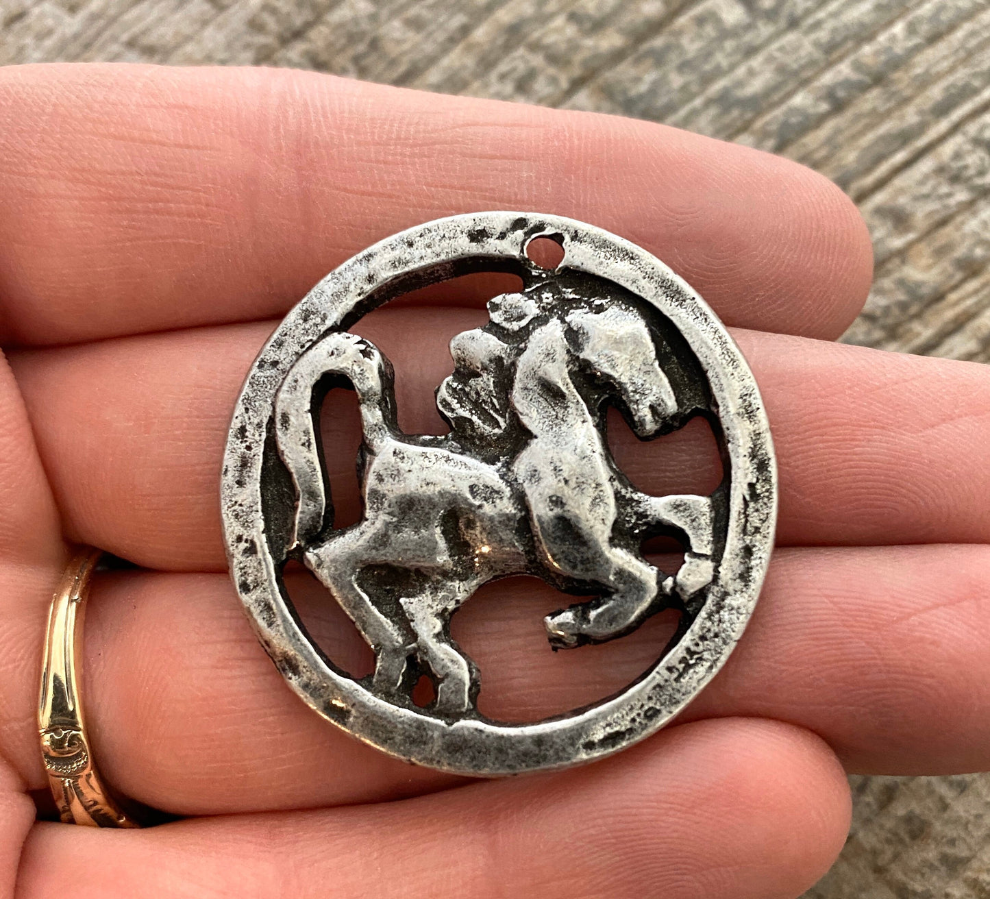 This large horse pendant is truly special. Not only is the horse gorgeous, but the piece really has a sculptural quality. This piece is perfect for a long necklace or short statement piece. It would serve well as a keychain too. This is perfect for all of those who hold a special place in their hearts for the majestic horse.