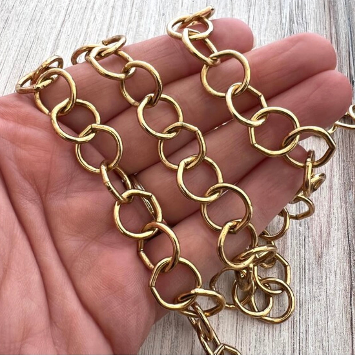 All Carson's Cove "12k Antiqued Gold" finish components are plated with real 12k gold, and then antiqued. They are all the same gold, but highly textured pieces may look a bit different than smooth pieces because the texture captures more of the antiquing elements. Why 12k gold? Because 12k gold is a light, neutral gold without an orange tone, and it looks beautiful on every skin tone!