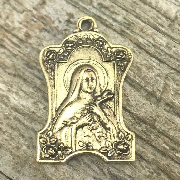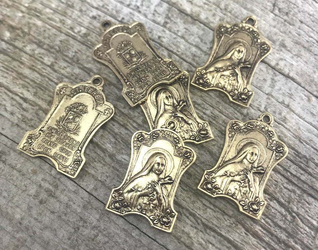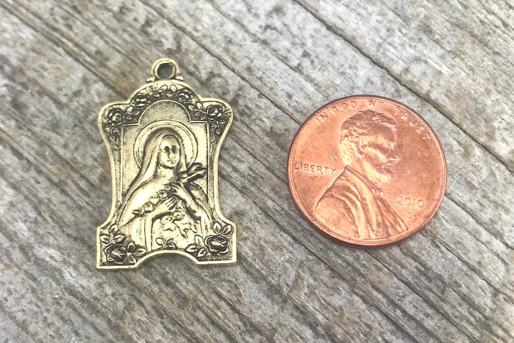 St. Therese de Lisieux is known as "The Little Flower" because she loved flowers and saw herself as "the little flower of Jesus." She said, "My mission - to make God loved - will begin after my death. I will spend my heaven doing good on earth. I will let fall a shower of roses." This is a beautiful medal illustrating St. Therese. The back says, "I will spend my heaven doing good upon earth." This medal is the perfect size for a necklace, earrings, or a bracelet.