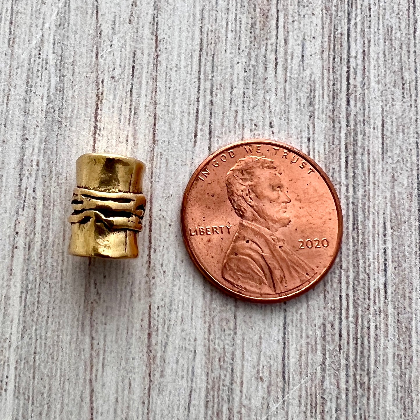 This is a hefty bead with nice texture. This looks excellent on stretch bracelets and works great with leather as well.
